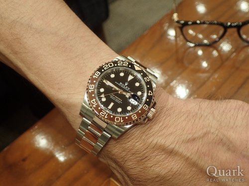 一年前にGMT-MASTER II(Ref.126710BLNR)を購入する時もSUBMARINERコンビと迷った末GMT-MASTER IIを購入。今回はSUBMARINERコンビを購入しようとクォークさんに訪れたのに何故かGMT-MASTER IIのコンビモデル(Ref.126711CHNR)を購入してしまった。通称“カフェオレ”の魅力には勝てませんでした。SUBMARINERコンビ購入まで道のりが遠い。来年こそはSUBMARINERコンビを購入します。