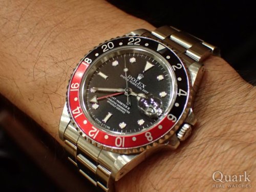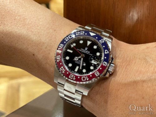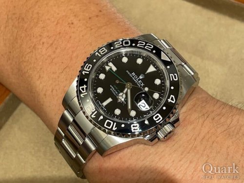 T様 いつもクォーク上野本店をご利用いただき誠にありがとうございます。GMT-MASTERⅡのご購入おめでとうございます!こちらのお時計は2007年~2019年まで生産されていた人気のモデルとなります。2019年に惜しまれながらも生産終了となってしまいましたが、今なお、根強い人気を誇っているモデルでございます。また、ロレックスのコーポレートカラーであるグリーンの文字盤ロゴと24時間針もオシャレでカッコいいですね!