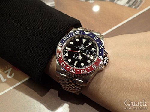 M様 いつもクォーク新宿店をご利用いただき誠にありがとうございます。素敵なコメントも頂戴し、誠に恐縮でございます。M様とお話をさせていただく時間はとても楽しく、あっという間でございました。Ref.126711CHNRは現行のスポーツモデルでは珍しい、渋い雰囲気が魅力のモデルですね。コンビネーションモデルでありながら派手さは感じられず、落ち着いた雰囲気でございますので、シーンを選ばずにご使用いただけるかと思います。お持ちのサブマリーナーとは異なり、ベゼル回転のピッチはスルスルしておりますね(笑)既にお持ちのロレックスコレクションと共に、末永くご愛用いただけましたら幸いでございます。次はデイトナでご検討との事でございましたので、その際も是非お手伝いさせていただけましたら嬉しいです。それでは今後とも末永いお付き合いの程、宜しくお願いいたします。