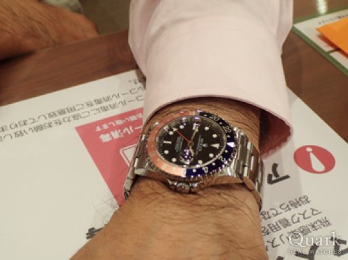 A様、この度は当店をご利用頂き誠に有難う御座います。ご来店の際には、16710と116710LNどちらにしようかと大変お悩みになっておりお話の中でGMTマスターIIへの熱い想いが私にも伝わってきました。A様はゴローズが大変お似合いでしたので今回ご購入した116710LNは間違いなく合う1本だと思います。現行のラインナップにはない、黒色のベゼルはビジネスシーンでも適度な主張で違和感なくご着用できると私も思います。海外に行かれる機会があれば是非GMT機能をご使用頂ければ幸いです。無料のブレスレットクリーニングも行っておりますので、是非お近くにお越しの際は当店まで足をお運び下さいませ クォーク梅田店 相馬