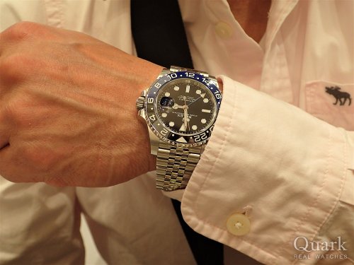 この度は、ご遠方よりクォーク横浜店にご来店ならびにご購入いただきまして誠にありがとうございました。こちらのGMTマスターIIは2019年の新作モデルで、24時間表示のセラミックベゼルにジュビリーブレスレットという、ロレックス初の組み合わせで話題を集めています。70時間のパワーリザーブを誇るキャリバー3285を搭載しており、見た目も実用性も向上したGMTマスターIIでございます。海外旅行好きなY様にはピッタリの機能を備えていますので、機会がございましたら、海外でも使ってみてください。操作方法やメンテナンスのご相談はお気軽にお問い合わせくださいませ。今後ともよろしくお願いいたします。 クォーク横浜店 長本