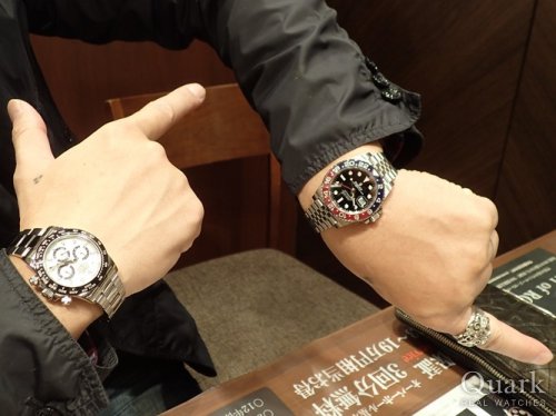 M様 いつもクォーク仙台店をご利用くださいまして誠にありがとうございます。釣り用にほしいな~、とダイバーズモデルのお話をしておりましたが、あれは空耳だったのでしょうか(笑)。あっという間にモデルがかわってしまいましたね。そんなところもM様らしくて違和感はまったくございませんでした。それよりも、誰かが欲しいというものを、先に選んでしまうM様のオチャメなところに思わず笑ってしまいました。新型GMT-MASTERII、ジュビリーブレスでゴージャスに生まれ変わってRef.126710BLRO、デイトナとはまた違う印象でカッコイイですね!パイロットウォッチでも船に乗ってしまえば関係ありませんよね!!でもM様、2本であっても私は100m潜ることはおススメしませんよ~~(笑)。たくさんご愛用いただいて思いっきり楽しんでください♪デイトナもGMT-MASTERIIもM様のお傍でずっと元気に活躍してくれますよう、応援しておりますので、万が一、気になることなどございましたら、いつでもご連絡くださいませ。またお店にも遊びにきてくださいね。今度はS様のご相談を一緒にのりましょう(笑)。それではこれからも変わらぬご愛顧を賜りますよう、よろしくお願い申し上げます。