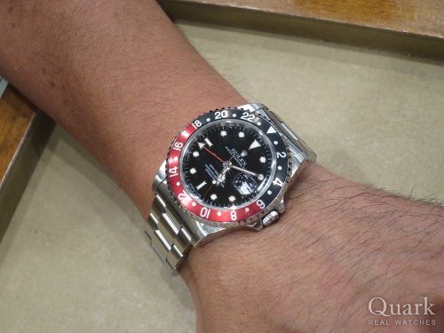 ペプシベゼルのRef.16710を普段使い用で買おうと思っていましたが、紹介してもらったコークベゼルを気に入ってしまいました!ベゼルもマット調&太字。トリチウム夜光にシングルバックルというところが魅力的でした。プレミアムモダンですがガンガン使います!
