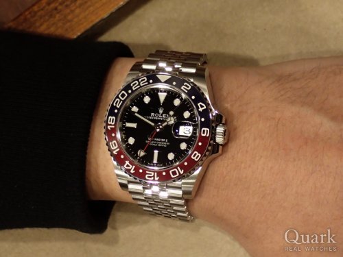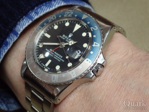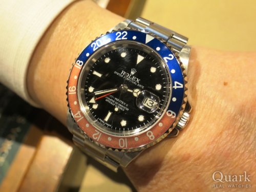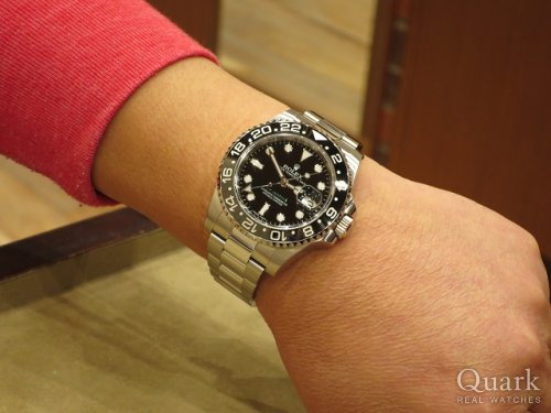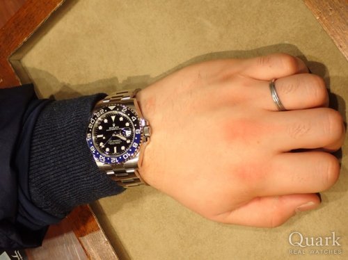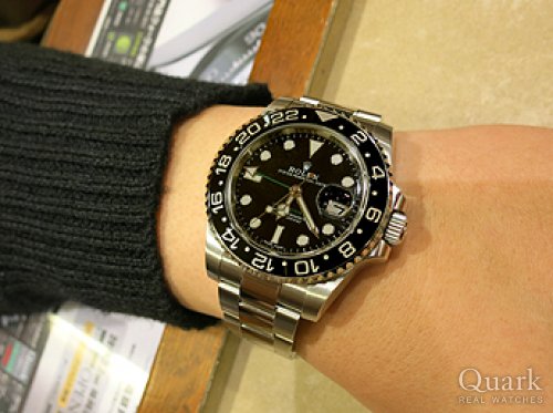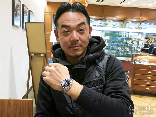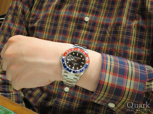 M様 いつもロレックス専門店クォーク上野本店をご利用頂き誠にありがとうございます。今回はGMT- MASTERⅡ Ref.16710ステックダイヤルのご購入のお手伝いが出来た事、大変嬉しく思います。昨年のバーゼルワールドでジュビリーブレスの新型モデルが登場してから更に人気度が増したGMTマスター。今回ご購入頂いたモデルは1990年~2007年までの間に生産されたRef.16710となります。その中で2006年以降に作られた一部の個体についてはダイヤルに表記されているGMT-MASTERⅡのⅡの書体が縦棒2本になっている物で珍しく『ステックダイヤル』と呼ばれております。今回はZシリアルで保証書もカードタイプとなり今後の資産性も楽しみな1本です。ご使用頂きしっかりとサポートさせて頂きますので今後、お時計の事で何かございましたらお気軽にご相談下さいませ。宜しくお願いいたします。