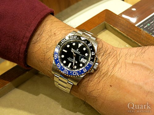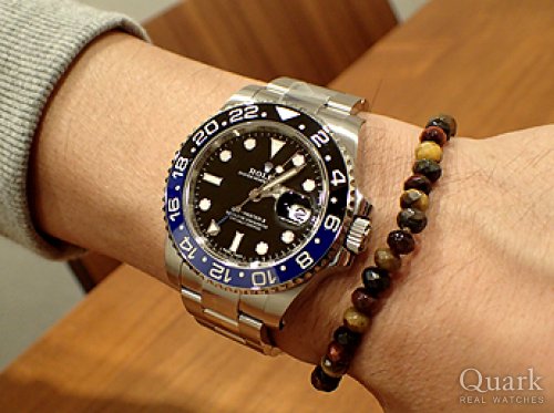 腕時計は好きで、しばらくロレックス以外のものを使っていましたが、またロレックスが欲しくなり、グリーンサブマリーナーかGMTマスターIIで悩みましたが、現物を比較して、青黒ベゼルのGMTマスターIIのデザインが気に入り、こちらに決めました。