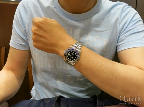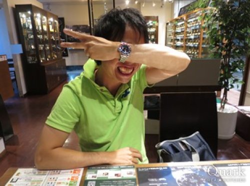 S様 いつもクォーク仙台店をご利用くださいまして誠にありがとうございます。また、当日はご案内までお時間を頂きまして大変失礼致しました。ロレックスならではの高級感に、スタイリッシュなデザイン、カッコイイですね~。SUBMARINERとはまた違う魅力をお楽しみ頂けるかと存じます。さわやかなブルーのTシャツにも大変お似合いでございますよ♪傷を気にしてしまうかもしれませんが、きっとこの私のコメントをご覧頂いている頃には既に気にならなくなっているのではないでしょうか(笑)。たくさんご愛用頂いてSUBMARINER以上に溺愛してくれること期待しております。その為にもしっかりお手伝い致しますので、気になる点などございましたらお気軽にお申し付けくださいませ。店頭にてブレス洗浄、サイズ調整を無料で承っておりますので、またおふたりで遊びにきてくださいね。そして、奥様の欲しいお時計がみつかりましたらご連絡ください、全力でお探し致します(笑)!それでは今後とも末長いお付き合いの程宜しくお願い申し上げます。