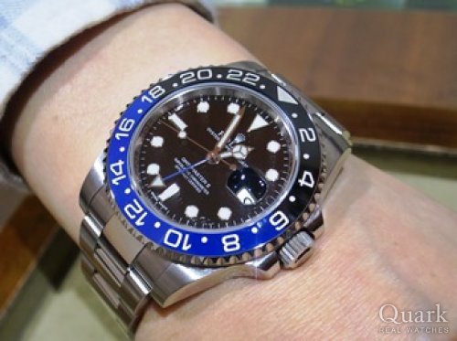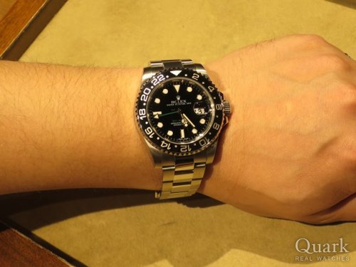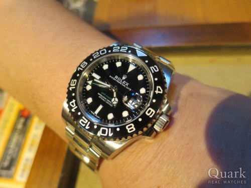 M様 この度はクォーク名古屋店をご利用頂き、誠にありがとう御座います。遂に憧れのロレックスですね。私自身、M様の御購入に携われる事が出来、とても嬉しく感じております。GMTマスターII Ref.16710は、生産終了モデルの中でも特に人気を集めており、中でも赤青ベゼルはお問合せの多いカラーとなります。今回お選び頂いた、スティックダイヤルは希少性高いレアモデルとなる為、タイミング良くご案内をさせて頂く事が出来、良かったと感じております。今後もお使い頂く中で、御相談等が御座いましたら、ご遠慮無く私までお申し付け下さい。栄にお越しの際は、お気軽に遊びにいらして下さい。またM様にお会い出来る日を楽しみにしております。