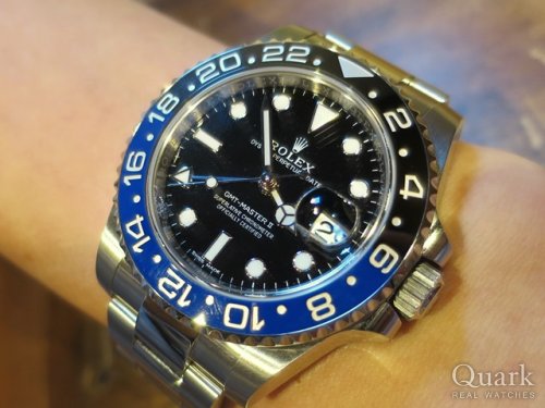 M様 この度はクォーク梅田店ご来店並びにご利用頂き誠に有難う御座います。スポーツモデルのGMTマスターは人気モデル!ベゼル周りの均等な数字の配置と、緑の差し色が特徴的で、ベルトの真ん中列が鏡面仕上げですので光り輝くタイプです☆今後とも、宜しくお願い致します。O様、ご紹介有難う御座いました。