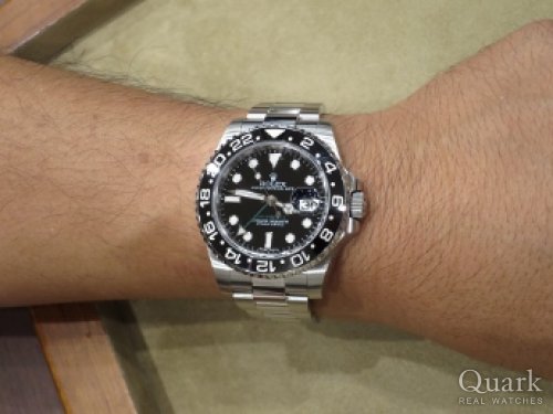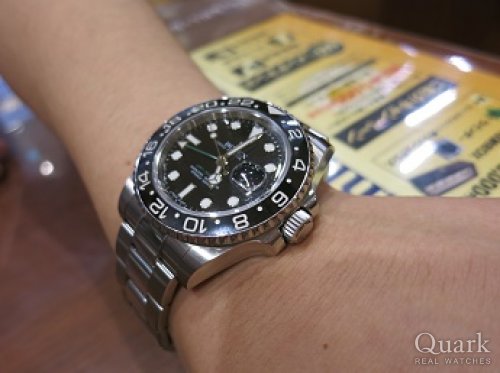 O様、いつもクォークなんば店をご利用頂きまして誠に有難うございます。今回のご購入にあたって他のモデルともお悩みでしたが、O様の腕元にはお選び頂いたGMTマスターII Ref.116710LNのサイズがとてもマッチしていましたね。セラミックベゼルは見た目の美しさはもちろんですが、キズ付きにくく耐久性に優れており、機能性・デザインともに世界中から高い評価を受けている人気モデルです。これからもO様に安心してご使用頂けるようにサポートさせて頂きますので、末永くご愛用頂ければ幸いでございます。またお会いできる日を心よりお待ちしております。  クォークなんば店 西村