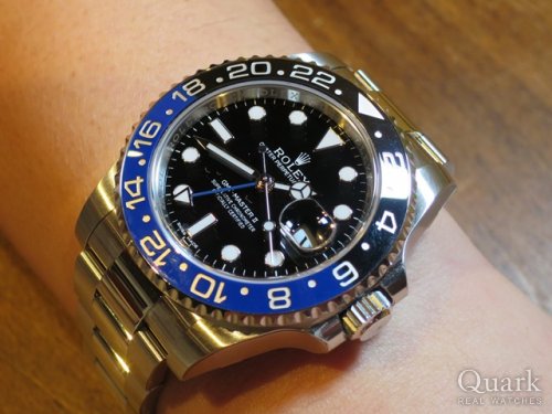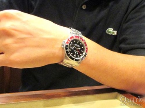 K様、この度はクォーク仙台店をご利用頂き、誠にありがとうございます。最初はサブマリーナーをご検討だったことと存じますが、K様のお話をお伺いしていく中で、最終的にGMT-MASTER II をご案内できて光栄でございます。サブマリーナーにはないツートンベゼルや24時間針が魅力的なモデルであることは勿論、赤黒ベゼルは現行モデルにないカラーリングで、より特別感を感じて頂ける一本かと存じます。さらに、シングルバックル、トリチウム夜光の組み合わせは、時計好きの方も唸らせる仕様でございます。末長くご愛用頂けますよう、引き続き精一杯サポートさせて頂きます。今後とも、何卒宜しくお願い申し上げます。 クォーク仙台店 武田