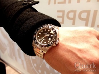 海外で仕事をしていることもあり、GMTマスターIIに決めました。ベゼルの色も気にっています。クォークさんでの購入は在庫があったことが理由です。