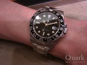 サブマリーナーとも迷いましたが、ベルトの高級感が気に入ってGMTマスターIIに決めました!!