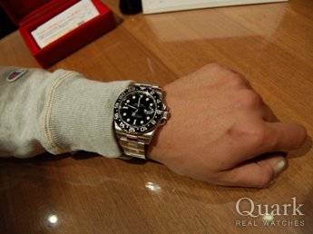 当初、新型グリーン・サブを検討していましたが、オン・オフ、どちらでも使えるデザインにしようということでGMTマスターIIを選びました。 デザインもそうですが、モデル決定における一番のポイントは、「着けている人が少ない!」という点です。