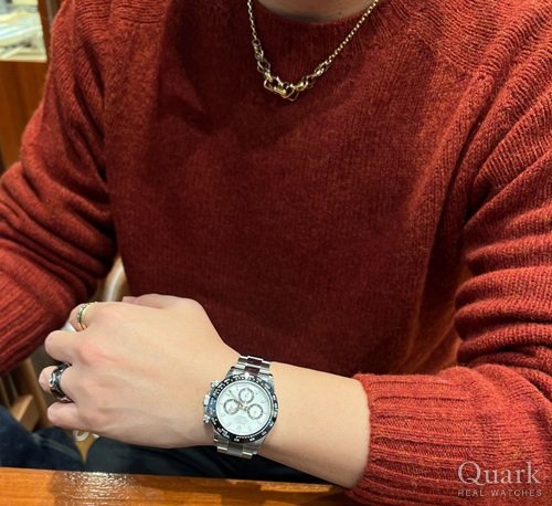 ヴィンテージのロレックスを集めていた矢先に急に現行デイトナが欲しくなりましたが、現行はマラソンで買えば良いと思い先代を購入。パンダダイヤルの太さのバランスが良いのとフチ無しのベゼルが購入の決め手となりました。