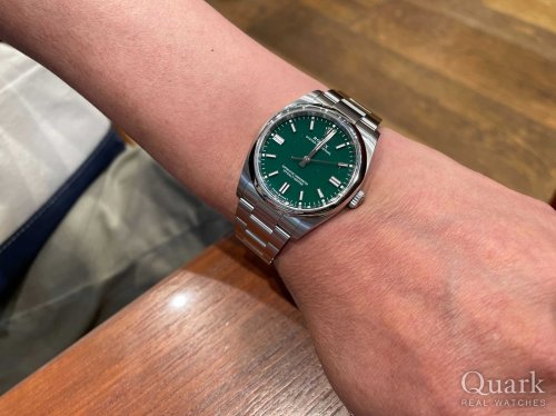 O様 いつもクォーク広島店をご愛顧頂きまして誠に有難うございます。又、この度は新作オイスターパーペチュアル36のグリーンダイヤルをお買い求め頂き重ねてお礼申し上げます。カラーダイヤル(特にグリーン)は、近年の時計業界でトレンドでもあり、一目をひきつけるインパクトあるダイヤルですね!様々なモデルをお使い頂いて、熟知されたO様らしいチョイスだと思います。是非、末永くご愛用頂けます様に願っております。またお使い頂く中でご不明な点やご用命の際にはお気軽にお申し付け下さいませ。今後とも宜しくお願いいたします。
