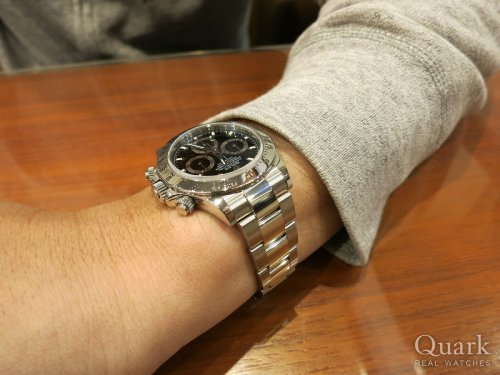 M様 この度はクォーク広島店をご利用頂きまして誠に有難うございます。今回お求め頂きましたデイトナ116519LNは2017年に登場したばかりで、まだ流通量自体が少ないモデルです。それをタイミング良くご案内できて大変うれしいです。人生の相棒として是非末永くご愛用下さいませ。お使い頂いて何か気になることがありましたら、気軽にご相談下さいませ。クォーク広島店 劉