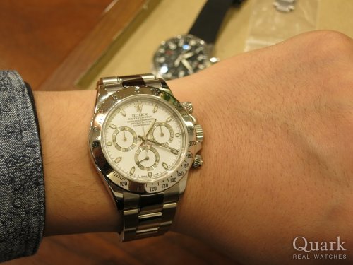 K様 いつもクォークをご愛顧頂きスタッフ一同心よりお礼申し上げます。また今回は、デイトナ(Ref.116520)をお買い求め頂きまして誠に有難う御座いました。大変気に入って頂く事が出来て本当に良かったです。即決で良いお返事も頂くだけあり、コンディションはもちろんの事、K様のご希望にピッタリ合った個体だったと確信しております。ご愛用のエルプリメロとは異なったデザイン・ムーヴメントやストーリーの魅力も是非、ご堪能頂きたいと思います。またミュージアムも是非、見に来て下さいね!K様とは既に長いお付き合いをさせて頂いておりますが、時計への情熱は揺るぎ無いと思いますので(笑)今後とも末永く、宜しくお願い致します。
