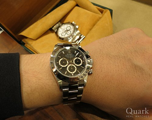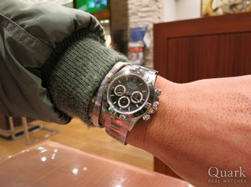 F様 いつもクォーク広島店をご愛顧頂き心よりお礼申し上げます。F様のロレックスコレクションに、念願のデイトナが加わりましたね!タイミング良く、オススメの個体をご紹介出来たので良かったと思っております。F様のロレックスへの情熱とこだわりは、お話をさせて頂く中でも強く感じます。本当に素晴しいコレクションになってきましたね!「お仕事で疲れた後、時計を見て癒される」と言われる、時計好きの方、結構多いですよ。(笑)是非、今回のデイトナも他モデル同様、末永くご愛用頂けます様、願っております。またお使い頂く上でご不明な点やご用命の際にはお気軽にお申し付け下さいませ。今後とも宜しくお願い申し上げます。
