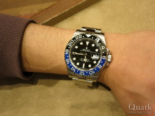 O様 この度はクォーク広島店をご利用頂きまして誠に有難うございます。今回はO様のファーストロレックスのご購入のお手伝いができ大変嬉しく思います。ご購入頂きましたGMTマスターIIの青黒ベゼル仕様はまだまだ市場流通量が少なく非常に人気の高いモデルです。光沢のある青黒ベゼルや鏡面仕上げのブレスレットのお洒落な雰囲気がO様にお似合いになられていました。それでは今後もO様のロレックスライフを精一杯サポートさせて頂きますので何卒宜しくお願い申し上げます。クォーク広島店 劉