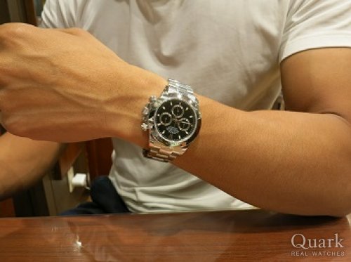 H様 いつもロレックス専門店クォークをご愛顧頂き心よりお礼申し上げます。また、この度はクォーク広島店にてデイトナ(Ref.116520) 黒文字盤をお求め頂きまして誠に有難うございました。デイトナの持つ抜群の存在感がH様の鍛えられた腕にマッチし、とても格好良く似合っていらっしゃいました!!数々の時計を経験されたH様だからこそ、今回選んで頂いた最終仕様のデイトナはご満足してご愛用頂けると思っております!またお使い頂く上で、ご不明な点やご用命の際にはお気軽にお申し付け下さいませ。今後とも末永いお付き合いの程、宜しくお願い申し上げます。