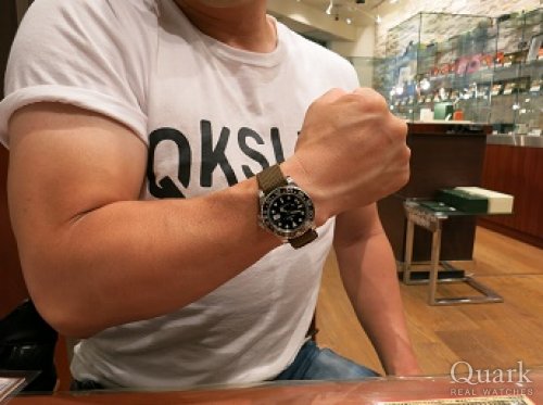 K様 この度はロレックス専門店クォーク広島店にてGMTマスターII(Ref.116710LN)をお買い求め頂きまして誠に有難う御座いました。GMTマスターIIの現行モデルは、仰って頂いた通り、スポーツモデルでありなが高級感があるデザインが魅力ですね!またナイロンストラップとの相性も抜群に良く、鍛え上げられたK様の腕にとてもマッチしており、素敵でした!是非、末永くご愛用頂けます様願っております。またお使い頂く上でご不明な点やご用命の際にはお気軽にお申し付け下さいませ。今後とも宜しくお願い申し上げます。