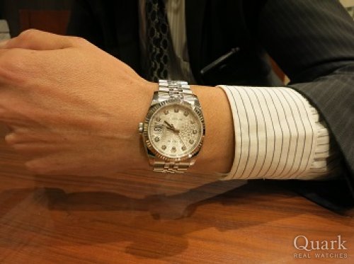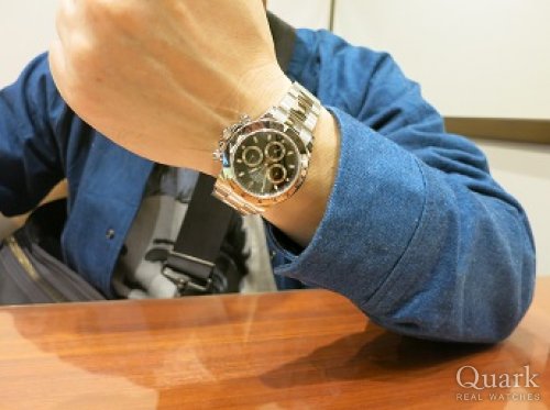 O様 この度はロレックス専門店クォーク広島店にてデイトナ(Ref.116520)ブラックダイヤルをお買い求め頂きまして誠に有難うございました。何度かご足労頂いた甲斐もあり、非常に良いタイミングで、一番ご納得頂ける時計を選んで頂いたと思っております。仰って頂いた通り、現行デイトナはSS素材でありながら、他のスポーツモデルを圧倒する存在感や高級感があり、着け応えも抜群です!まさに一生モノとして相応しい一本ですね!長年お使い頂いたデイトジャストに代わり末永くご愛用頂けます様、願っております。またお使い頂く上でご用命の際にはお気軽にお申し付けくださいませ。今後とも宜しくお願い申し上げます。