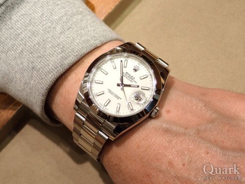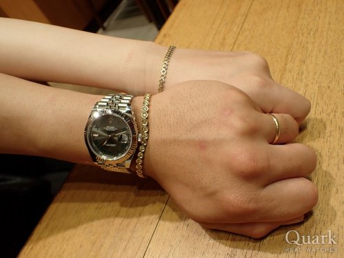 服装にあわせやすいブラックダイヤルを選びました。現行型の126000と一つ前の116000を見比べさせてもらいましたが、116000のほうがメモリの一部が数字だったのでシンプル過ぎないデザインで気に入って、こちらを選択しました。大切に使わせて頂きます。