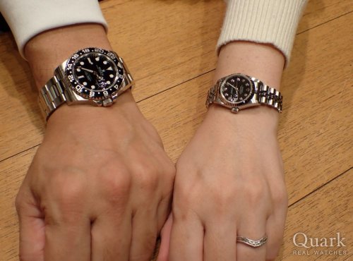 K様 この度はクォーク神戸店をご利用くださいまして、誠にありがとうございます。元々は、旦那様のお時計を探しにご来店頂いたのですが、K様の目に留まるデザインのデイトジャスト、そして結婚記念の年の個体を見つけられたのはとても運命を感じます。そして、個体を見られてからのK様の「買います」の決断の早さが朗らかな雰囲気とは対照的に、カッコよくて印象に残っております。今回お選びいただきましたデイトジャストRef.79174Gは、26ミリケースで袖おさまりのいいサイズ感なので華奢なK様にとても良くお似合いでございました。旦那様のGMTマスターと同じブラックダイヤルなので、ペア感も感じられ素敵ですね。時間あわせは、私がいつでも承りますので、お気軽にご用命くださいませ。K様ご家族のご来店を心よりお待ち致しております。