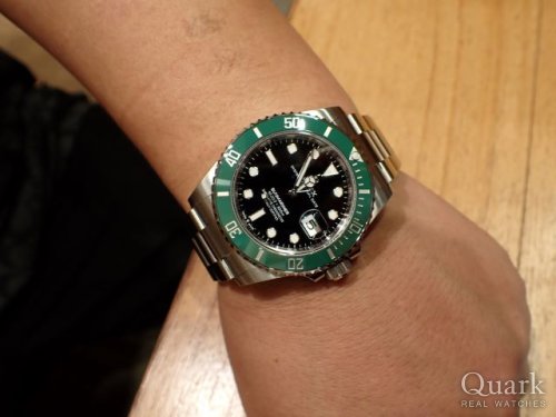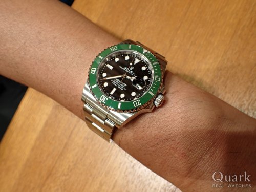 K様 この度はクォーク神戸店をご利用下さいまして誠に有難うございます。現行のグリーンサブカッコいいですよね。ダイヤルがブラックですので引き締まった感じとグリーンのベゼルで存在感も感じられます。サブマリーナーはどの世代からも支持され色んなシーンで着用できますので、末永くご愛用頂けましたら幸いでございます。今後ともクォーク神戸店ならびにクォークをよろしくお願いいたします。  神戸店 畑