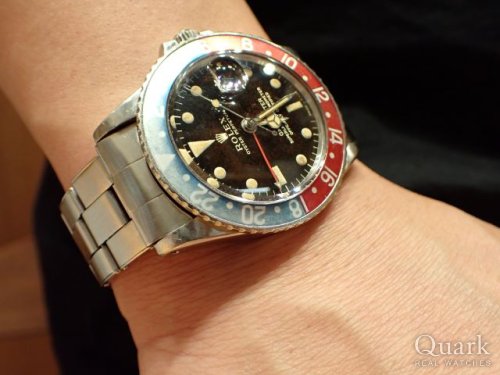 T様 いつも、クォーク神戸店をご利用下さいまして誠に有難うございます。ご購入までに何度も足を運んで頂き感謝申し上げます。お選び頂いたGMTマスターは、希少なミラータイプでベゼルも良い雰囲気に退色しておりますのでかなり格好良い1本かと思います。文字盤のロゴがゴールドなのもミラーダイヤルの特徴です♪T様に大変良くお似合いでしたので、末永くご愛用頂けましたら幸いでございます。今後ともクォーク神戸店ならびにクォークをよろしくお願いいたします。クォーク神戸店 増田