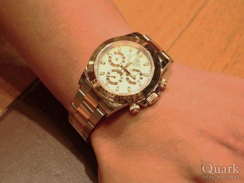 H様、いつもクォーク神戸店をご利用頂きまして、誠に有難うございます。お選び頂きましたデイトナRef.116500LNはスポーツモデルの中で最高峰で、今年最新モデルRef.126500LNが発表されたことで今大注目のステンレスデイトナとなっております。お探しの方も多く、デイトナの中で特に人気の高い1本となっております。H様に大変良くお似合いでしたので、末永くご愛用を頂けましたら幸いです。今後ともクォーク神戸店を宜しくお願いいたします。 クォーク神戸店 増田