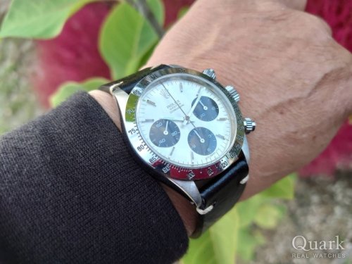 デイトナ表記があるタイプも所有してましたがインパクトがあるインダイヤルと、シグマナローのこのタイプは表記ありに比べ品があります。ここまで完璧な個体は個人的になかなか出てこないのではないかと思います。また革ベルトで使用すると印象もまた違いますね。今回もありがとうございました。