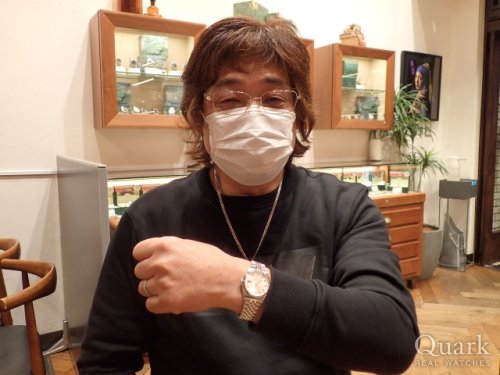 I様、この度もクォークをご利用頂き誠に有難うございます。現在も多数所有されておりますが、今までに数々の時計を着用されてこられたI様が到達されたデイデイトは真にI様に相応しいモデルかと思われます。デイデイトが放つ輝きはI様が求める全てが兼ね備わっております。この永遠の定番モデルを今回は是非末永くご着用下さいませ。次回もお力になれるよう頑張りますので今後とも何卒宜しくお願い致します。 クォーク神戸店 店長 三瀬
