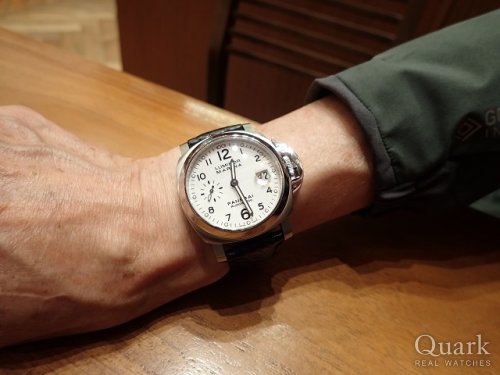 S様 この度はクォーク神戸店をご利用くだいまして、誠にありがとうございます。今回、S様にお選びいただきました「パネライ ルミノール マリーナ Ref.PAM00049」は、パネライの中では小振りな40ミリケースながら、防水は300mと日常使いには十分過ぎるスペックです。パネライの40ミリケースは流通が少なく、弊社でも