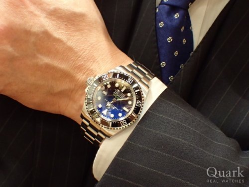 M様 いつもクォーク神戸店をご利用くださいまして、誠に有難うございます。今回もM様のトークが巧みで、楽しい時間を過ごすことが出来ました。重ねて感謝申し上げます。長年の営業で培ったM様のトーク術は、とても勉強になります。高度なスキルのため、私が簡単に真似が出来そうにないことが残念ですが、いつかM様のようなスマートなスキルを持てるよう頑張ります!さて、今回お選び頂いたディープシー Ref.126660 Dブルーはそのグラデーションになった文字盤の格好良さや迫力のあるサイズ感など、独特の魅力に溢れたモデルですね。オシャレなM様にとてもお似合いでございました!ディープシーが、いつも素敵なスーツを着こなすM様の、相棒となれば幸いです。お時間ございましたら、弊店へ遊びにいらしてください。またお話しできることを楽しみにしております。