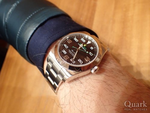 とにかくデイト無しが好みで、以前ミルガウスを購入した時にもエアキングも見ていた。 グリーンカラーのアクセントがありデザインも気に入った。