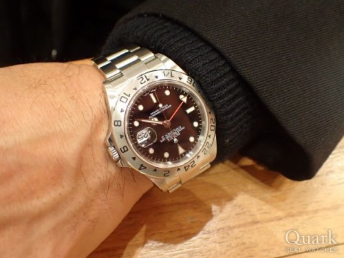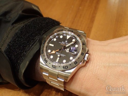 GMTマスターやサブマリーナーよりもリーズナブルなエクスプローラーII。現行型より2mm小さく、腕にジャストフィットするサイズ感が気に入っています。