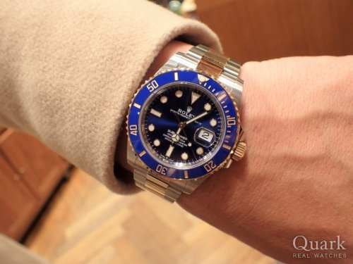 エバーローズゴールドのブレスレットと回転ベゼルが肌の色によくあっているので、キラキラし過ぎずちょうどいい具合です。