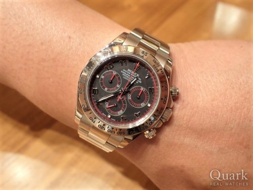 K様、この度はクォーク神戸店をご利用頂きまして誠に有難うございました。日頃よりご贔屓下さり心より感謝を申し上げます。今回ご購入頂きました Ref.116505(茶黒目)は、2008年から生産されているオールPG仕様のデイトナです。こちらの色目は2019年からの新色で、発売当初から大人気です。全体の配色バランスが絶妙で、上品さとカッコ良さを兼ね備えた最高のモデルです。K様のお召し物や雰囲気にもマッチされていて、とてもお似合いでございました。末永くご愛用頂けましたら幸いです。今後もご指名頂けますようしっかりとサポートをさせて頂きます。何かご要望などございましたら、私井内までお気軽にお申し付けくださいませ。また、ブレスレットの洗浄及び調整も無料で行っておりますので、お近くに来られた際には是非共遊びにいらして下さい。心よりお待ち致しております。 クォーク神戸店 井内