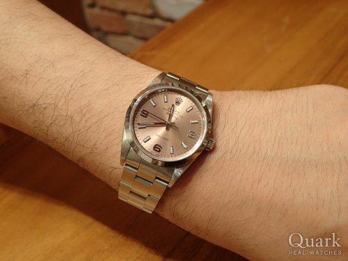I様 この度はクォーク神戸店をご利用くださいまして、誠にありがとうございます。今回お選び頂きましたエアキング Ref.14000Mは、小ぶりなケースではありますが、ロレックスの定番モデルとして長年に渡り支持されてきている素晴らしい時計です。I様、拘りのポイントでもあるピンクダイヤルは、シンプルな中にキラリと個性が光る1本ですね。おしゃれなI様はきっと、フォーマルにカジュアルにと、様々な装いに素敵にコーディネートされるのでしょうね。是非また、エアキングを着けて遊びにいらしてください。I様のコーディネート楽しみにしております。I様の腕元で良きパートナーとなります様、しっかりとサポート致しますので、お困りな事などございましたらいつでもご相談ください。今後ともクォーク神戸店をよろしくお願いいたします。