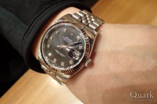 D様、いつも大変お世話になっております。ご遠方からお越し頂き感謝申し上げます。デイトナ「Ref.116520」に続いてデイトジャスト「Ref.116234G」のご購入誠にありがとうございます。スポーツモデルとスタンダードモデルで使い分けができますので、シーンに合わせてローテーションでお使い頂ければ幸いでございます。今回お選び頂いたのは、オールシルバーカラーに10個のダイヤモンドが輝く豪華な1本です。D様に大変良くお似合いでしたので、末永くご愛用下さいませ。今後とも、クォーク神戸店を何卒宜しくお願い申し上げます。 クォーク神戸店 増田