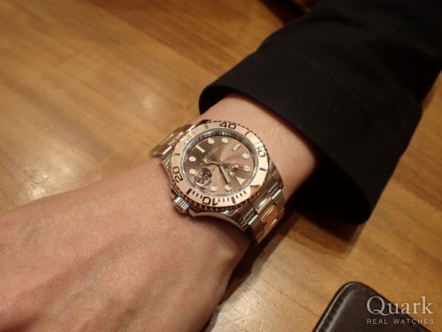M様、この度はクォーク神戸店をご利用頂きまして誠に有難うございました。ご購入頂きました Ref.116621(チョコレート)は、2016年から生産されているヨットマスターのSS+18Kエバーローズゴールド仕様のコンビモデルです。ピンクゴールドは肌なじみも良く、チョコレート文字盤との相性も抜群でとても美しいです。スポーティさとラグジュアリーさを兼ね備え、様々なシーンでご利用頂けると思います。とてもお似合いでございました。末永くご愛用頂けましたら幸いです。今後もご指名頂けますよう、しっかりとサポートをさせて頂きます。何かご要望などございましたら、私井内までお気軽にお申し付けくださいませ。また、ブレスレットの洗浄及び調整も無料で行っておりますので、お近くに来られた際には是非遊びにいらして下さい。心よりお待ち致しております。                        クォーク神戸店 井内