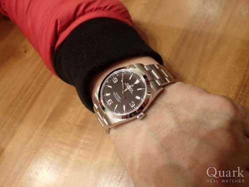 Y様、この度はクォーク神戸店をご利用頂きまして誠に有難うございました。ご購入頂きました Ref.214270は、2016年より生産されている現行エクスプローラーIです。このモデルから文字盤のアラビアインデックス部分に夜光塗料(クロマライト夜光)が入る仕様となりました。夜でも視認性に優れ、実用性はさらにアップしております。飽きのこないシンプルデザインでON・OFF問わず大活躍間違いなしの1本でございます。とてもお似合いでございました。末永くご愛用頂けましたら幸いです。今後もご指名頂けますよう、しっかりとサポートをさせて頂きます。何かご要望などございましたら、私井内までお気軽にお申し付けくださいませ。また、ブレスレットの洗浄及び調整も無料で行っておりますので、お近くに来られた際には是非遊びにいらして下さい。心よりお待ち致しております。                         クォーク神戸店 井内