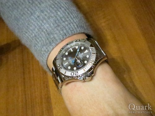 A様 この度はクォーク神戸店をご利用くださいまして、誠にありがとうございます。お求め頂いたヨットマスター ダークロジウム文字盤は、控えめで落ち着いた高級感が魅力的で、A様の上品で落ち着いた雰囲気にマッチしていて、とてもよくお似合いでございました。また、ケースの両サイドが丸みを帯びており着け心地も良いかと思います。是非、末永くご愛用くださいませ。ブレスレットの洗浄や調整なども無料で行っておりますので、お近くに来られた際は、お気軽にお立ち寄り下さいませ。また今後ご愛用されていく中で、ご不明な点などありましたら、お気軽にお問合せ下さいませ。今後とも宜しくお願い致します。