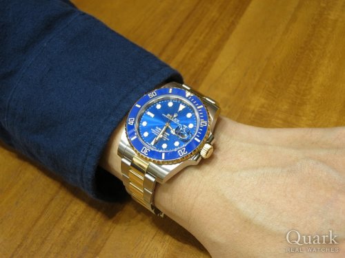 I様 いつもクォークをご利用頂き、誠にありがとうございます。お求め頂きました青サブは、独特のブルーの色とイエローゴールドとの相性が抜群なモデルでインパクトと高級感を演出してくれます。また、現行タイプは、旧型と比べると重みや重厚感も向上しており、ブレスレットの微調整も好きな時にどこでも出来るグライドロッククラスプも魅力的です。末永くご愛用頂けますようしっかりとサポートさせて頂きますので、ご不明な点等ございましたら、何なりとお気軽にご相談くださいませ。今後共クォークをよろしくお願い致します。