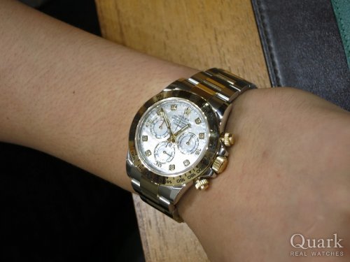 S様 この度はクォーク神戸店をご利用くださいまして、誠にありがとうございます。ベースがシェル文字盤で、その上に贅沢にも金粉を吹き付けたゴールダスト文字盤。全く、他のモデルとはお悩みになりませんでしたね!とても綺麗なその輝きに、S様が一目惚れされるのも分かります!ピンクゴールドの柔らかい上品な輝きとゴールドダストの派手過ぎない高級感がS様にとてもお似合いでした。是非、末永くお使い頂ければ幸いです。これからS様のロレックスライフがよりよいものとなりますよう、しっかりサポートさせて頂きますので、ご愛用されていく中でご不明な点などございましたらお気軽にご相談くださいませ。今後ともクォーク神戸店をよろしくお願いいたします。