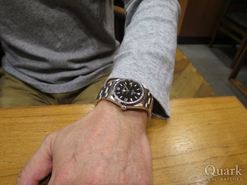 T様、この度はクォーク神戸店をご利用頂きまして誠に有難うございました。ご購入頂きましたモデル、Ref.116900は、これまでミルガウスだけに採用されていたCal.3131を搭載し、2016年に満を持して復活を遂げた現行エアキングです。機械的な部分だけではなく、デザインも一新され、とてもお洒落になっております。実用性抜群の帯磁モデルですので、様々な場面でお使い頂ける事と存じます。T様にとてもお似合いでございました。末永くご愛用頂けましたら幸いです。今後もご指名頂けるようしっかりとサポートさせて頂きますので、何かご要望などございましたら私井内までお申し付け下さいませ。また、ブレスレットの洗浄及び調整も無料で行っておりますので、お近くに来られた際には是非遊びにいらして下さい。心よりお待ちしております。