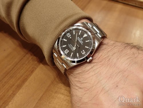 M様 この度はクォーク神戸店をご利用頂き誠に有難う御座います。ご購入頂いた現行モデル エクスプローラーI Ref.214270ですが、特徴的な369のシンプルなダイヤルとこれまで標準サイズであった36ミリから3ミリ大型化されたケースも現代風で人気になっております。人気のスポーツモデルの中でも人気のモデルです!また、オンオフ問わずご使用頂けますので、今後も末永くご愛用頂ければ幸いです。また何かご不明な点などありましたら、お気軽にお問合せ下さいませ。今後とも宜しくお願い致します。 クォーク神戸店 柳原