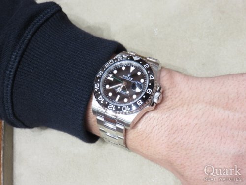 T様 この度はクォーク神戸店をご利用頂き誠に有難う御座います。ご購入頂いた現行モデル GMTマスターII Ref.116710LNですが、パイロットウォッチとして確固たる地位を誇り、機能性も優れ耐久性にも強く人気のモデルになっております。T様のコメントにもあるように、ロレックスカラーのグリーンのGMT針がとてもカッコよく特徴的であり、セラミック製のベゼルで高級感もあるスポーツモデルです。オンオフ問わずご使用頂けますので、今後も末永くご愛用頂ければ幸いです。また何かご不明な点などありましたら、お気軽にお問合せ下さいませ。今後とも宜しくお願い致します。 クォーク神戸店 柳原