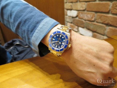 K様、この度はクォーク神戸店をご利用頂きまして誠に有難うございました。ご購入頂きましたモデル、Ref.116613LBは、SSと18KYGを使用したコンビモデルです。華やかさと爽やかさを兼ね備え、コンビモデル屈指の人気を誇ります。何といっても文字盤のブルーがとても綺麗で、腕元を彩ってくれます。サイズ感も丁度良く、ご着用のお召し物にもとてもお似合いで、素敵でございました。末永くご愛用頂けましたら幸いです。今後もご指名頂けるようしっかりとサポートさせて頂きますので、何かご要望などございましたら私井内までお申し付け下さいませ。また、ブレスレットの洗浄及び調整も無料で行っておりますので、お近くに来られた際には是非遊びにいらして下さい。心よりお待ちしております。            クォーク神戸店 井内